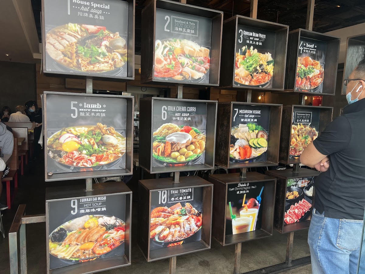 Welcome to Boiling Point - Rowland Heights, where hot pot dreams come to life at 1370 Fullerton Rd. This beloved location offers an impressive array of menu items that cater to every palate. Start with their #4 Beef Hot Soup, a customer favorite, teeming with sumptuous ingredients like sliced beef, seafood mushrooms, and vibrant veggies. For a unique twist, try the #10 Rose Milky Hot Soup, blending creamy milk with dried rose for a fragrant experience.